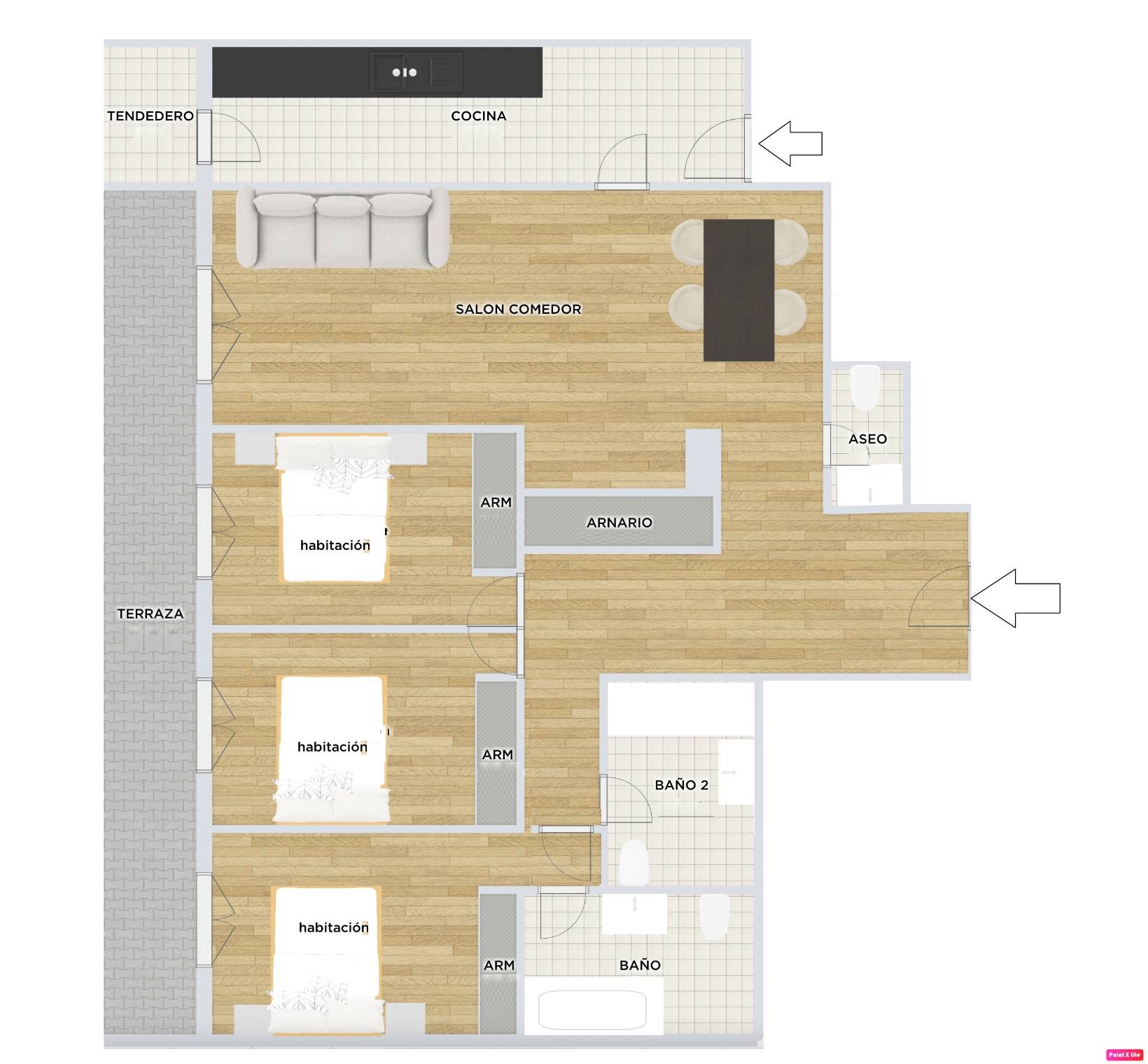El piso ofrece un enorme potencial de actualización. Existe la posibilidad de acristalar la terraza, integrándola en el salón para disfrutar de las vistas durante todo el año. En los días soleados, podrás abrir completamente el frente acristalado y disfrutar de una sensación única de terraza abierta con total privacidad, gracias a la distancia entre edificios.