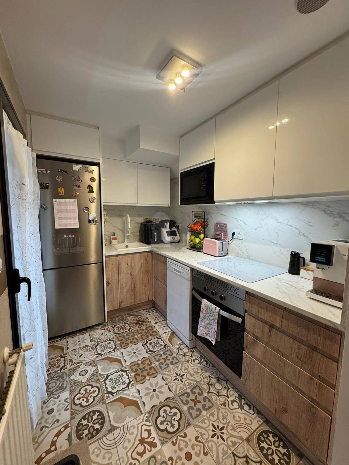 Inmueble con reforma de calidad y estilo a estrenar, muy luminoso, amplio ventanal con balcón a salón, calefacción de gas natural, aire acondicionado con bomba de frio-calor en salón y DM principal, suelos de tarima y gres, carpintería de madera en blanco en puertas y armarios, armarios empotrados y cocina americana amueblada con electrodomésticos (excepto frigo, lavadora y secadora) y terraza-tendedero.