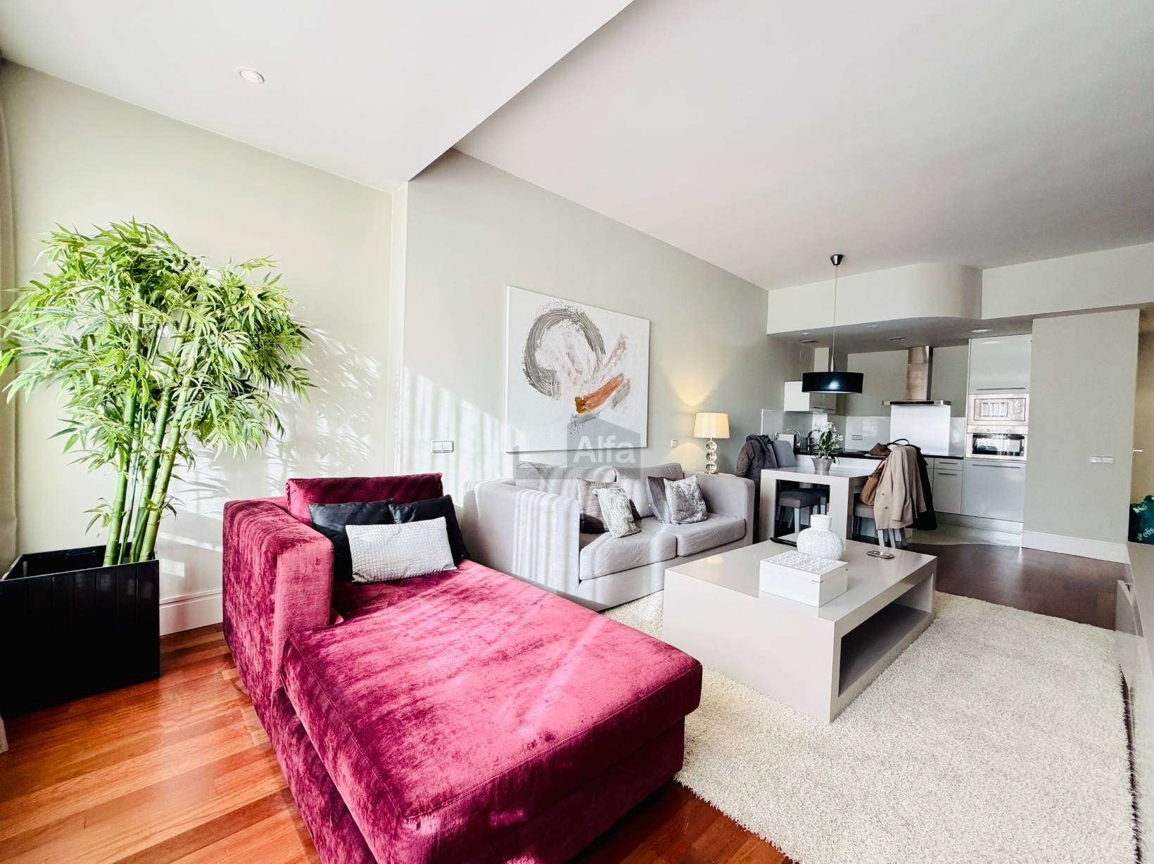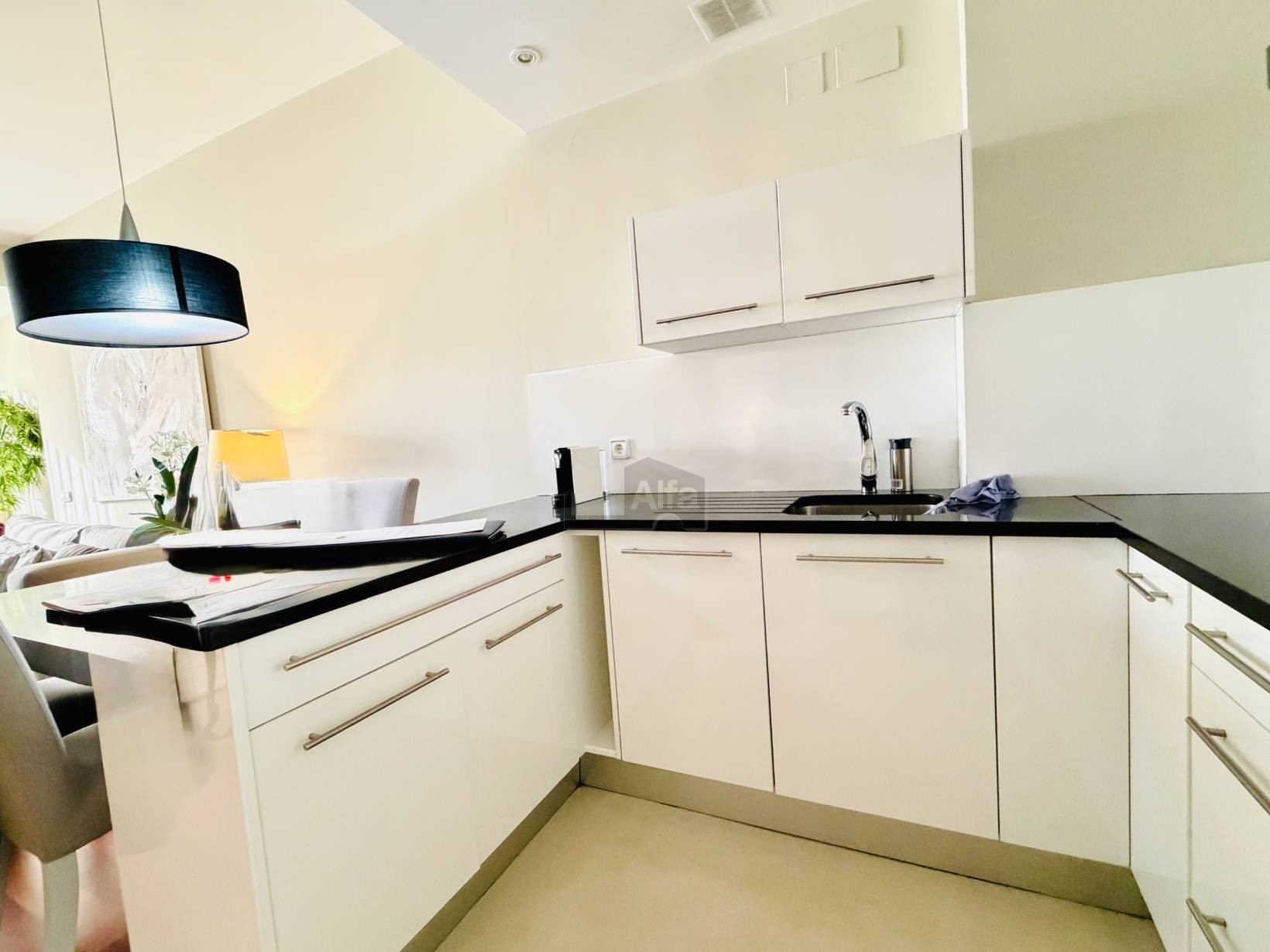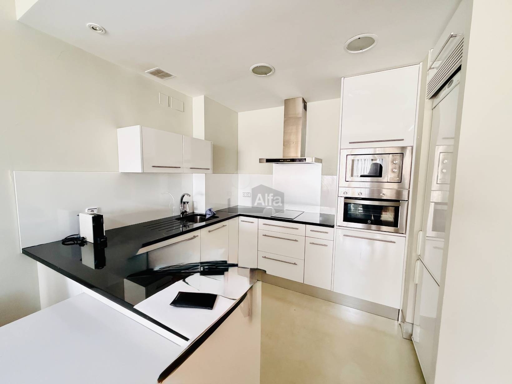 Amplio salón con cocina abierta, totalmente equipada con todos los electrodomésticos.